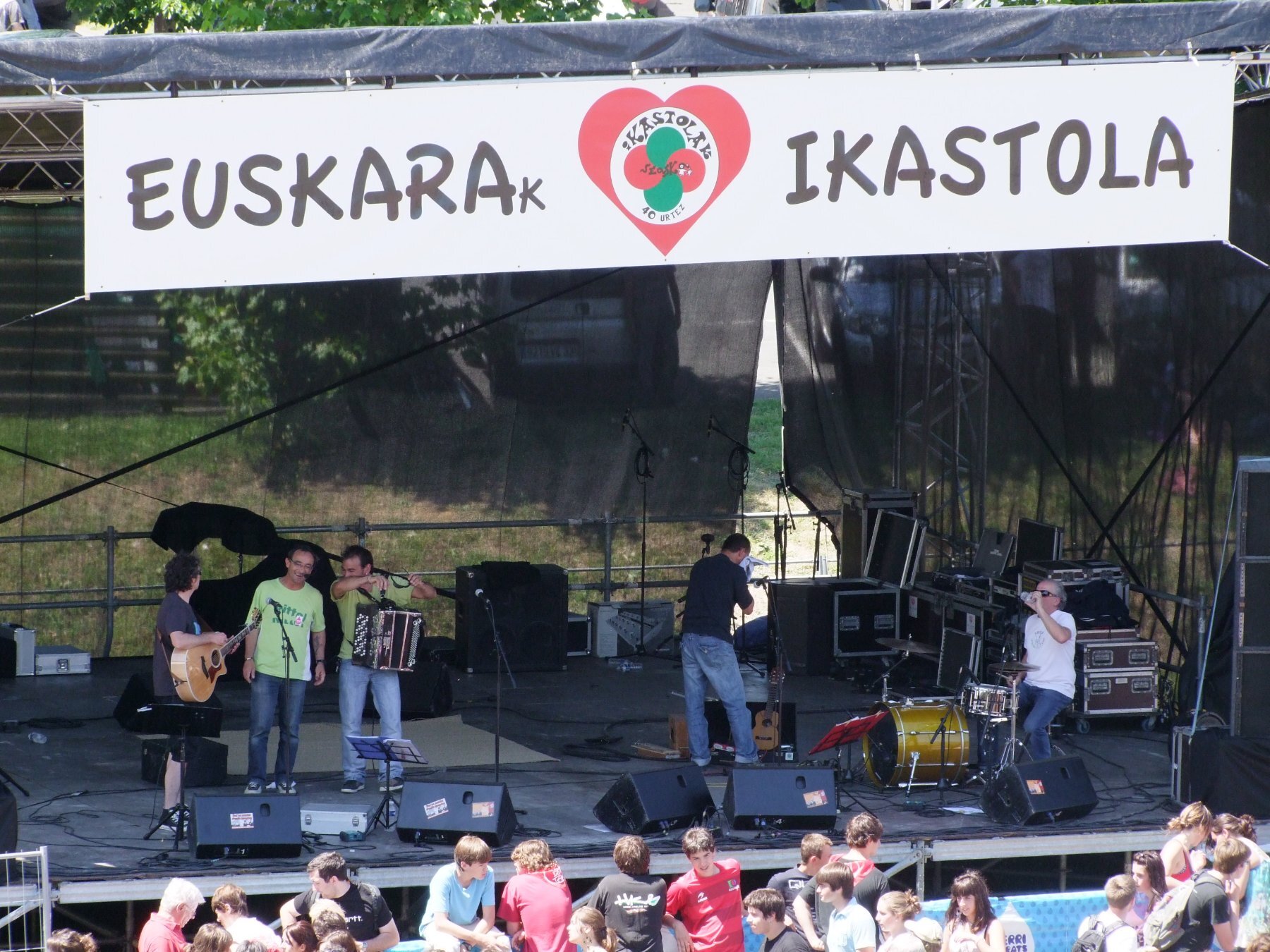 El recinto está dividido en varias zonas coloreadas Conciertos de rock vasco, danzas tradicionales y demostraciones de bertsu. (poesía improvisada). Para las familias, hay hinchables y juegos de madera. También hay muchos puestos de comida y bebida que sirven talos y bebidas locales.